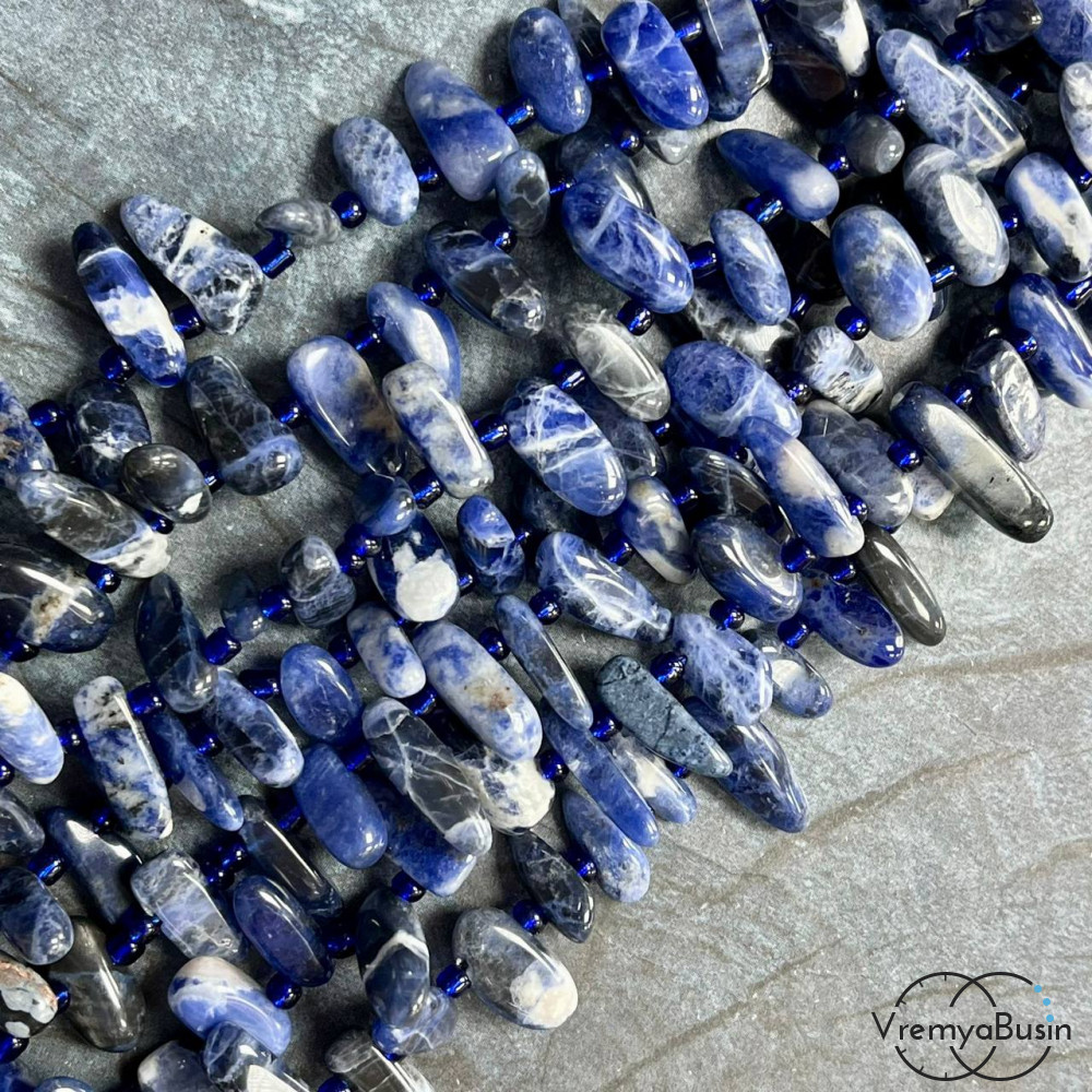 • Сапфирин, голубой агат, галтовка палочки, ок. 8-10х15-25 мм (нить, ок.  60 шт.)