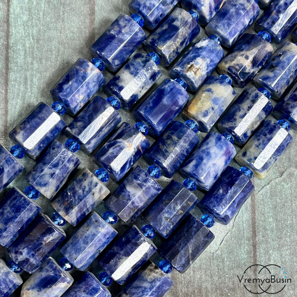 Содалит. Гранёный цилиндр 10х15 мм (1/2 нити, ок. 11 шт.)