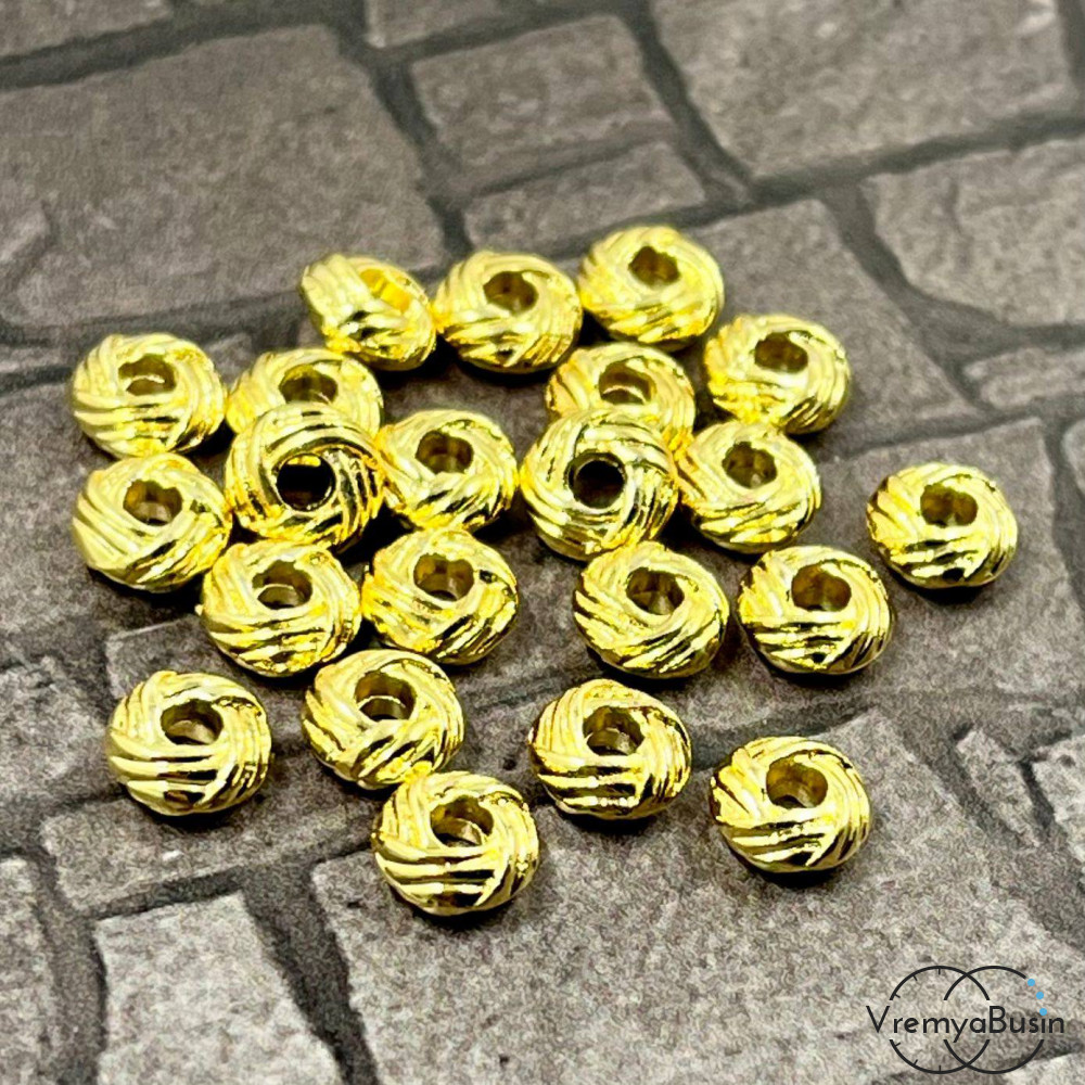 Бусины разделители, 6х3 мм, латунь с позолотой (10 шт.)