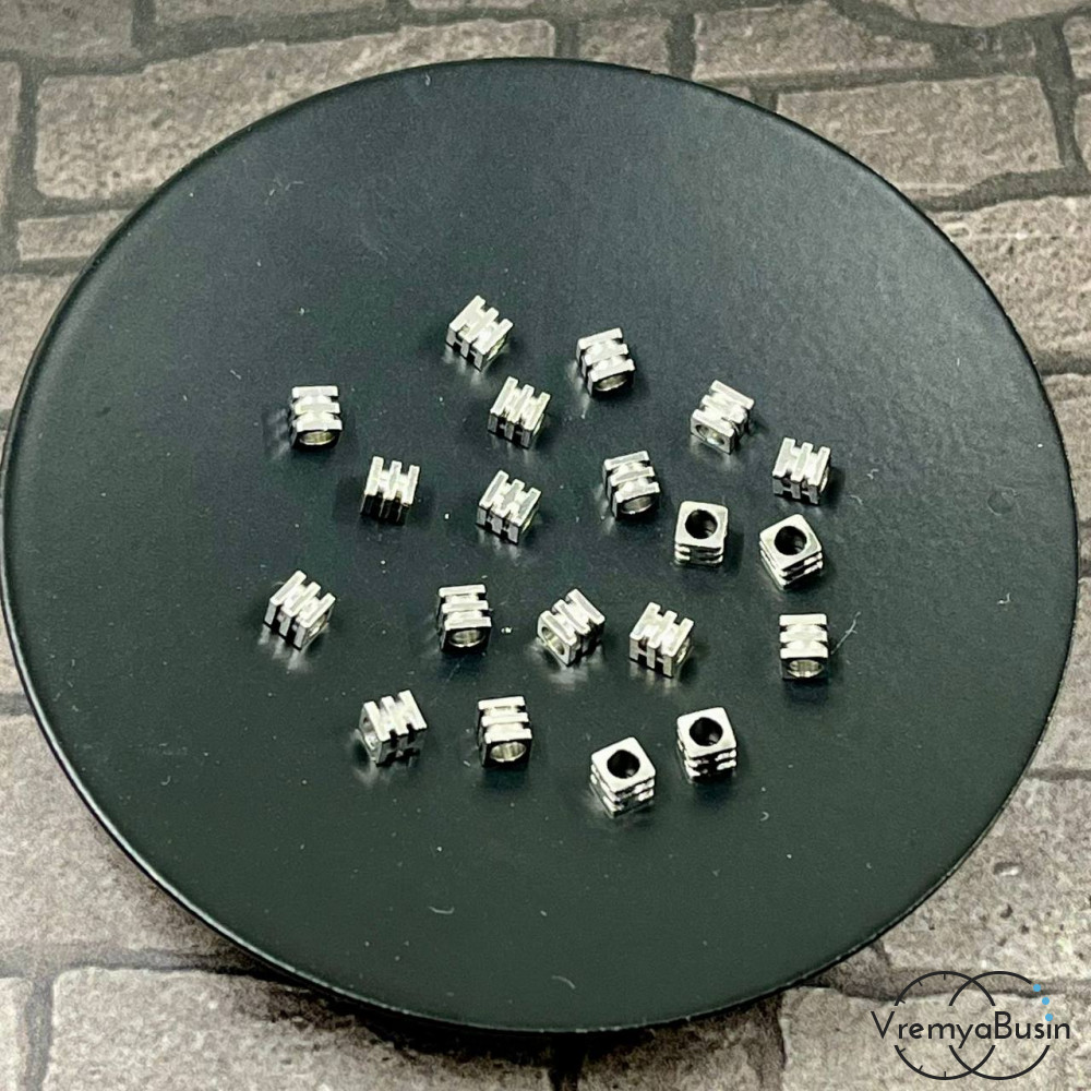 Бусины разделители, кубики 3.2х2.5 мм, латунь с родиевым покрытием (10 шт.)