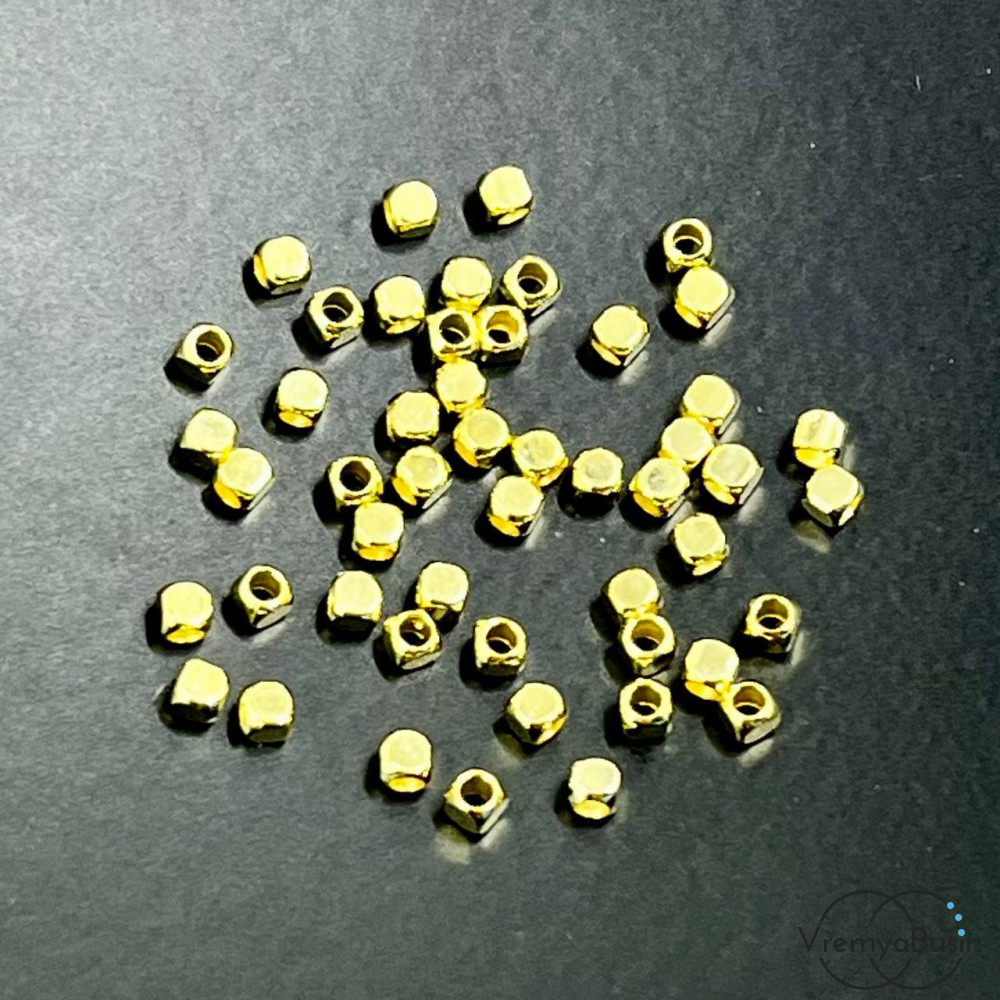 Бусины разделители, округлые кубики 2 мм, латунь с позолотой (10 шт.)