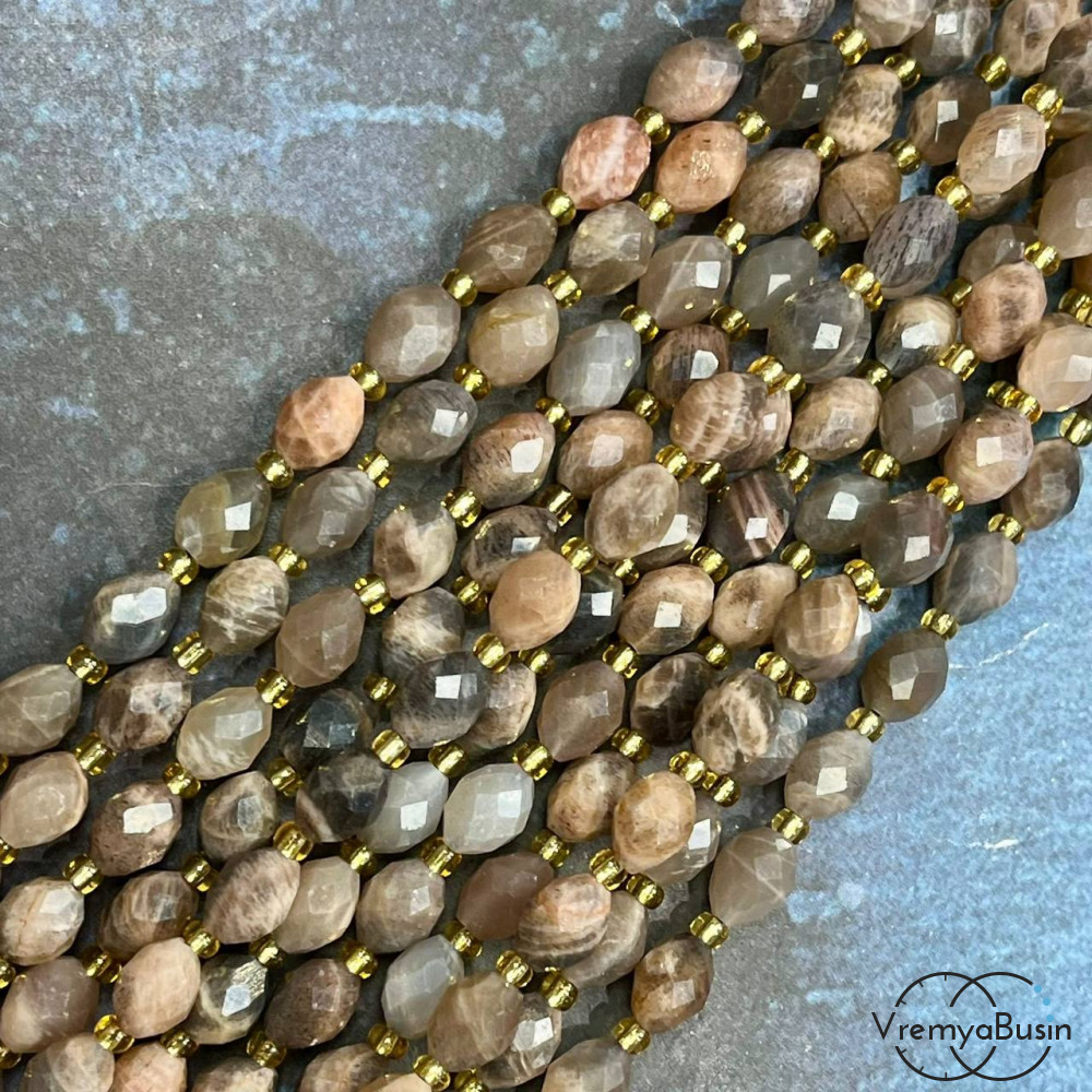 Солнечный камень, бочонок с ювелирной огранкой, ок. 6х8 мм (нить, ок. 38 шт.)