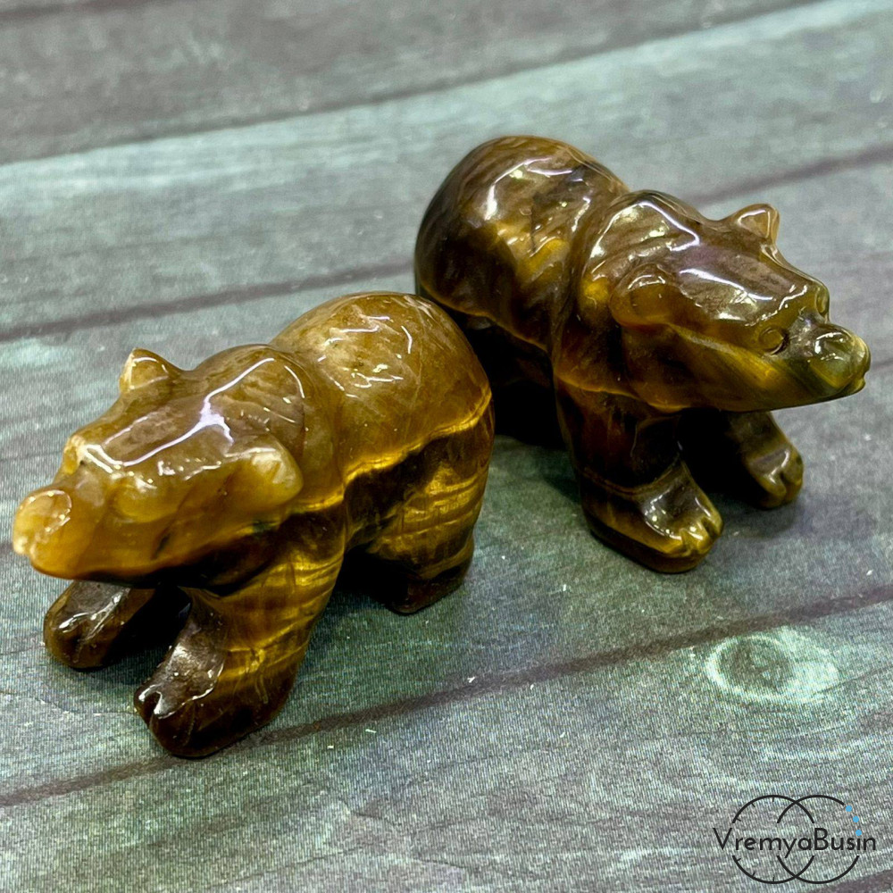 • Тигровый глаз. Статуэтка из резного камня "Медведь",  ок. 40х25х20 мм  (1 шт.)