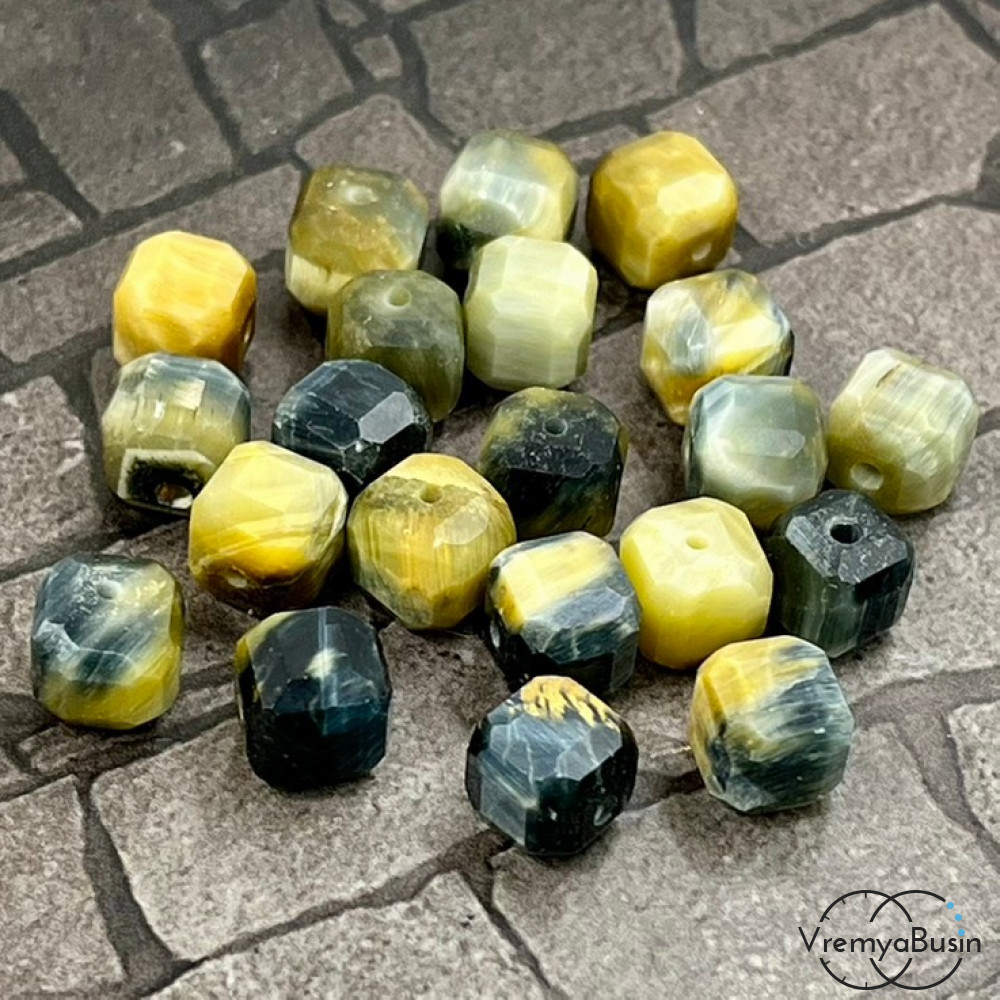 • Соколино-тигровый глаз, кубик граненый 8 мм (1 шт.)