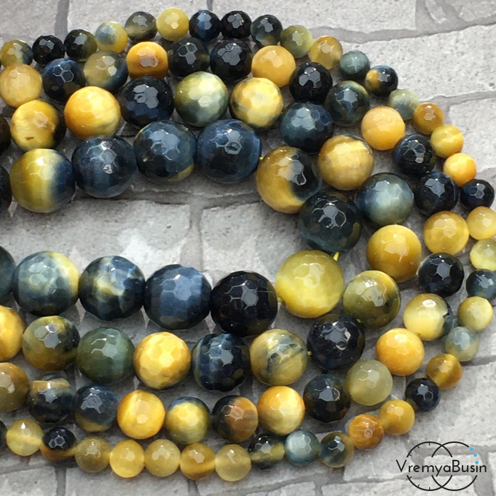 Соколино-тигровый глаз, шарик граненый 6-8-10-12 мм (1 шт.)