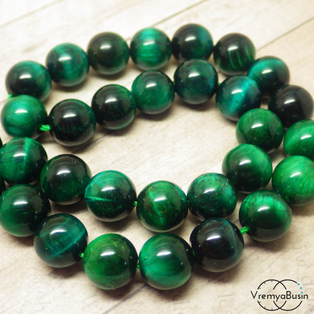 • Тигровый глаз натур., тонир. цв. зеленый, шарик гладкий 10 мм (1 шт.)