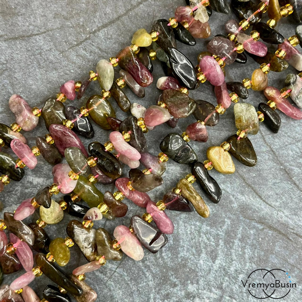 • Турмалин, галтовка палочки, ок. 8х15-20 мм (нить, ок.  60 шт.)