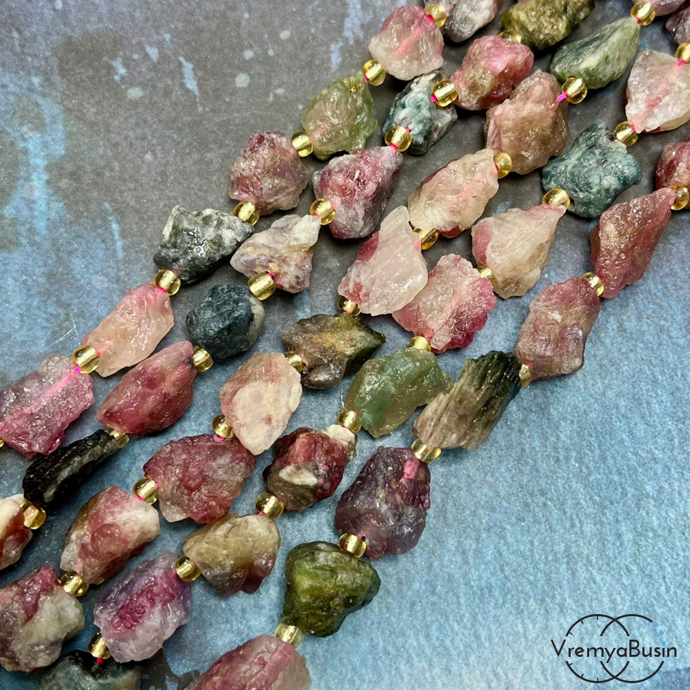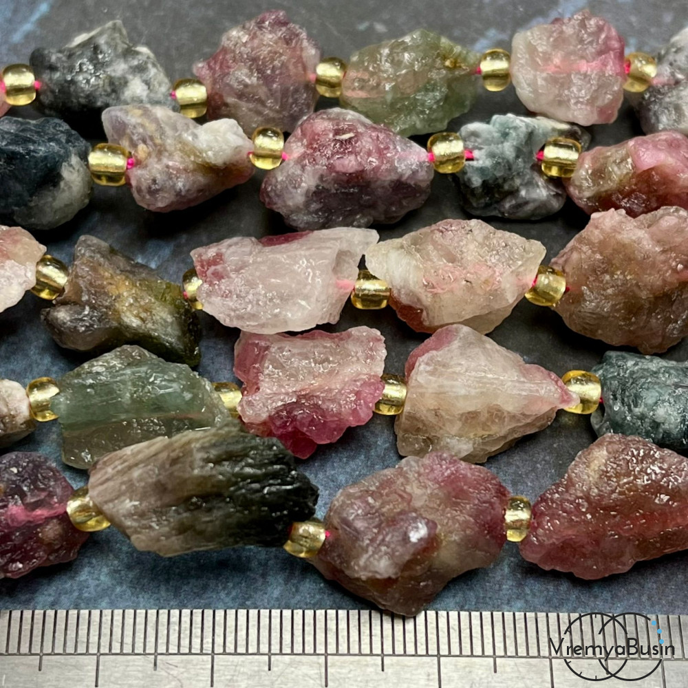 Турмалин, кусочки необработанного камня ок. 18х15 мм (нить, ок. 22 шт.)