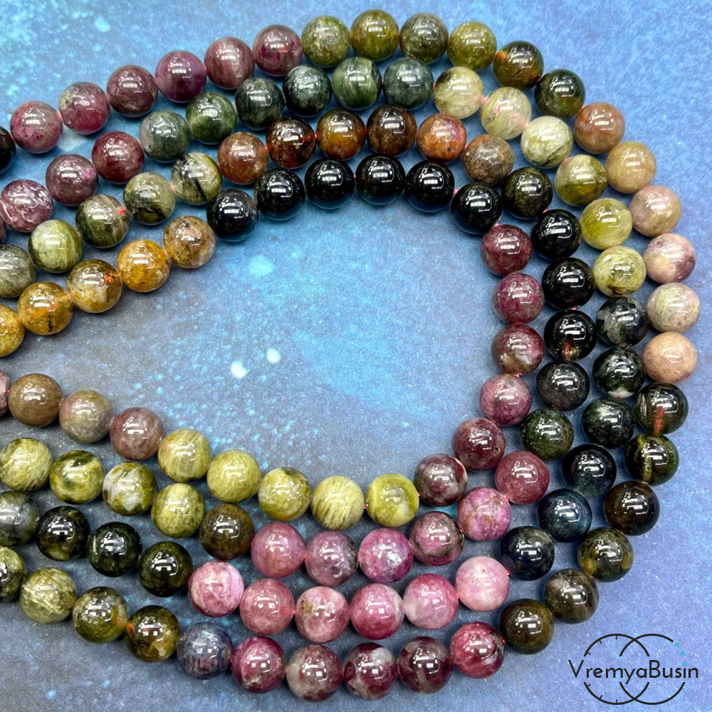 Турмалин натур., шарик гладкий 8 мм, сборка по цвету (1/2 нити, ок. 24 шт.)
