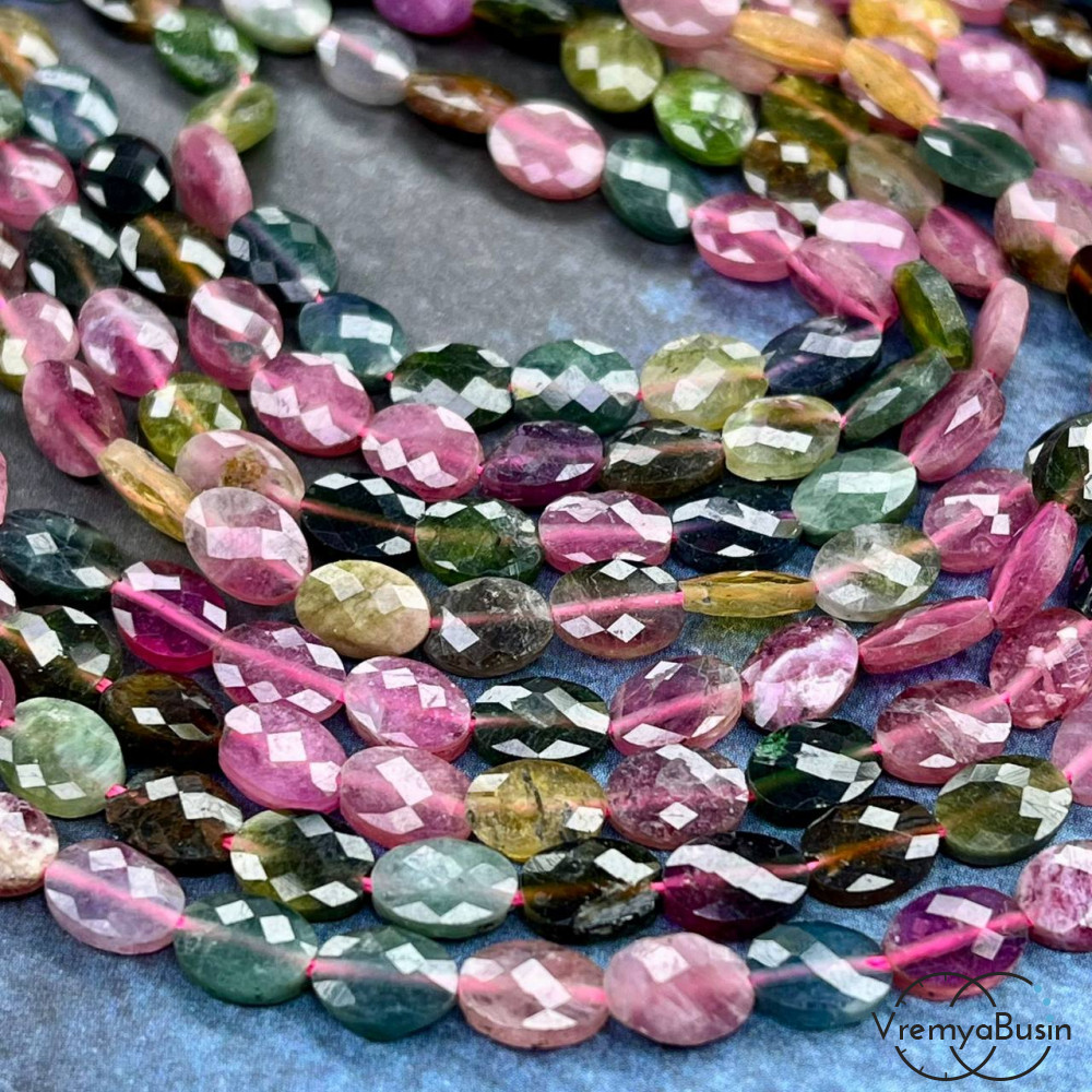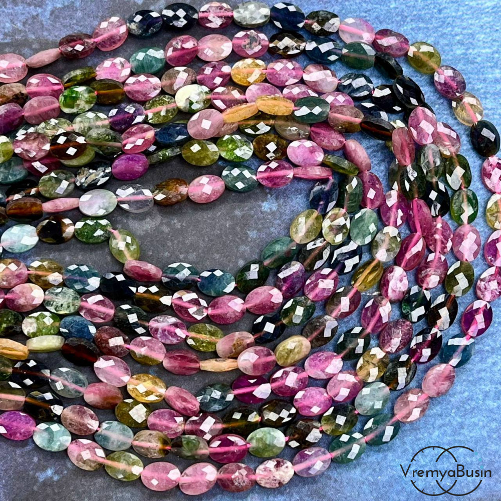 Турмалин, овал плоский граненый ок. 5х7 мм (1/2 нити, ок. 28 шт.)