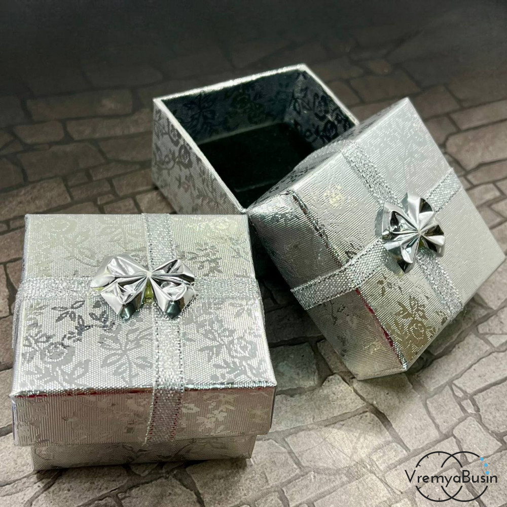 • Коробочка подарочная с рисунком, 6х6х4 см, цв.     серебряный    (1 шт.)