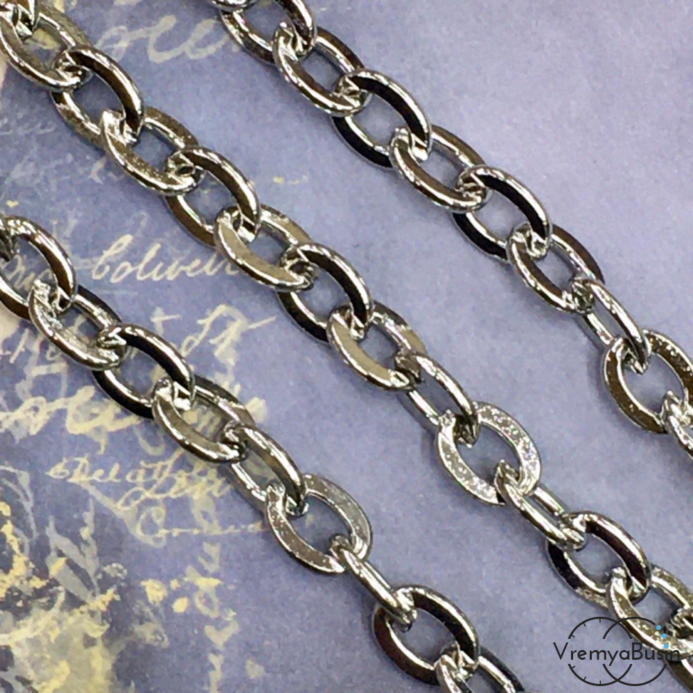 Цепочка металлическая крупная, латунь с родиевым покрытием (1/2 м.)