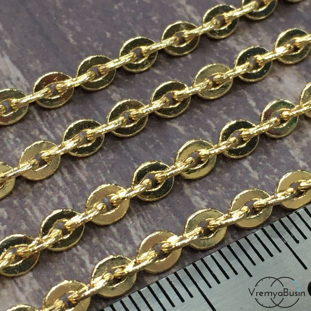 Цепочка металлическая в асс., звено 4х5 мм, латунь с позолотой (1 м.)