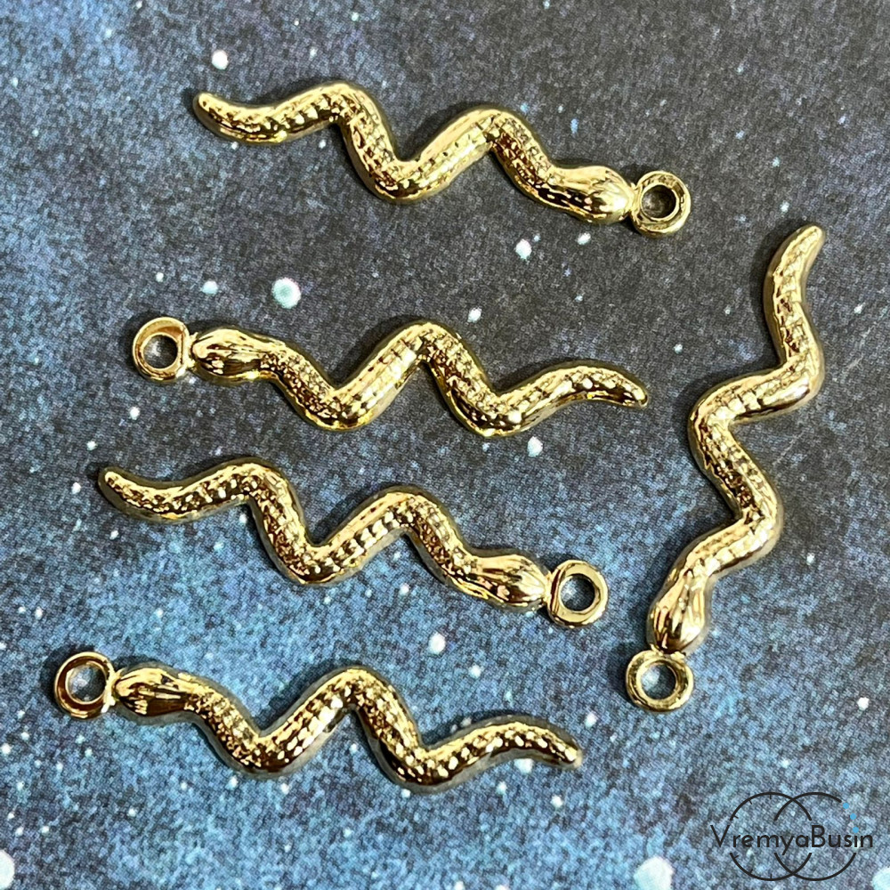 Подвеска из латуни с позолотой, "Змея" 6х28 мм (1 шт.)
