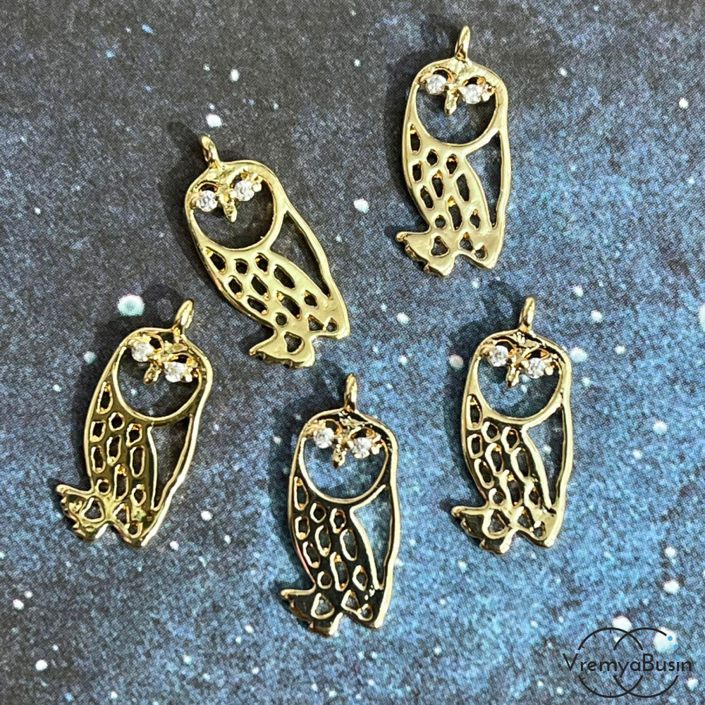 • Подвеска из латуни с позолотой, "Сова" 7х16 мм  (1 шт.)