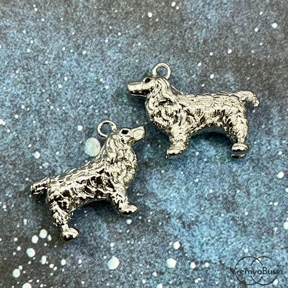 Подвеска из латуни с родиевым покрытием, "Собака" 20х15х6 мм (1 шт.)