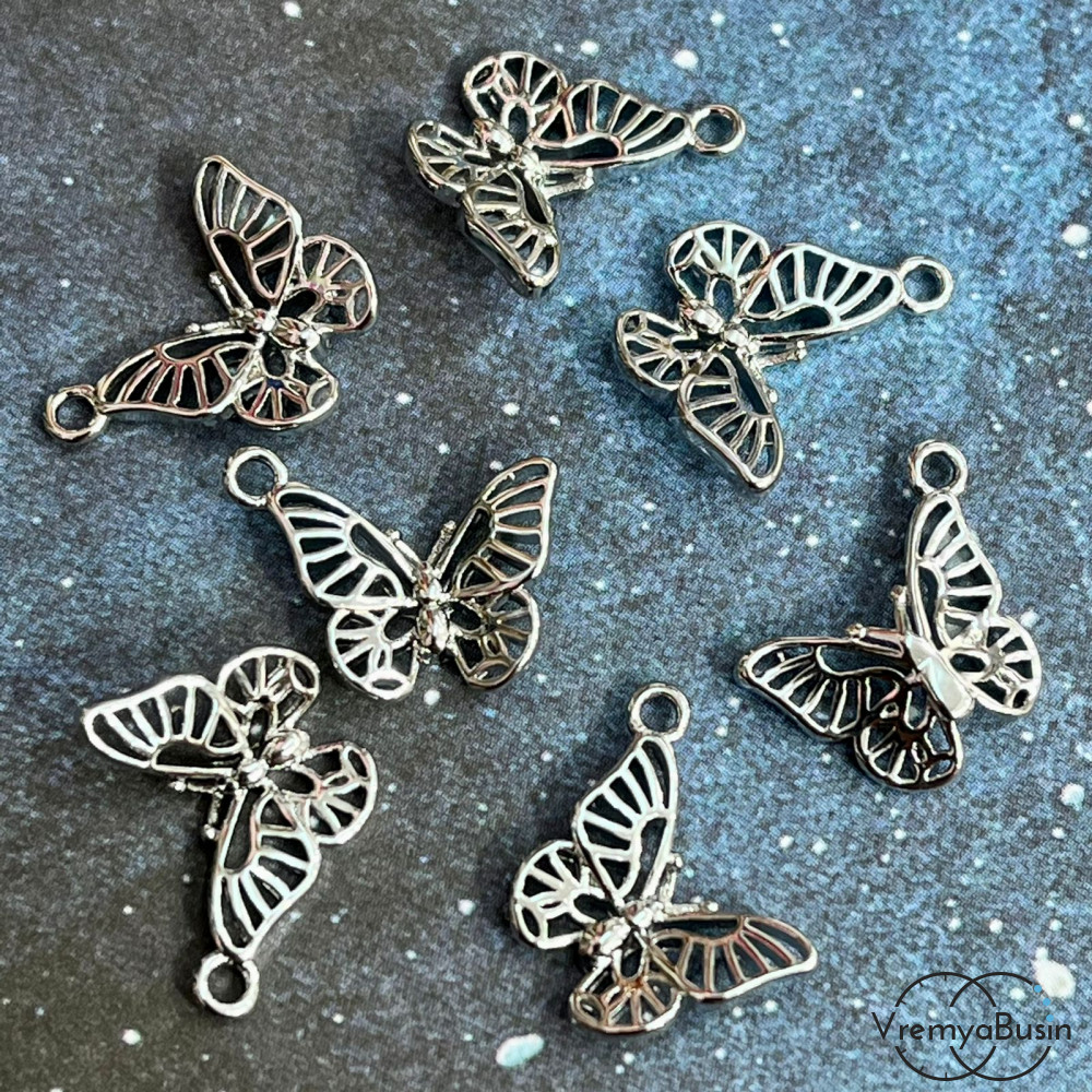 Подвеска из латуни с родиевым покрытием, "Бабочка" 13х15 мм (1 шт.)