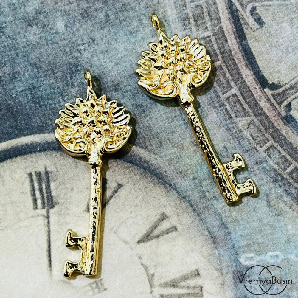 • Подвеска "Ключ", 12х32 мм, из латуни с позолотой (1 шт.)