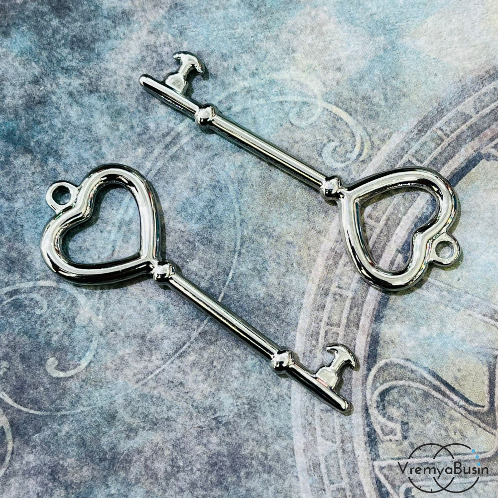 • Подвеска "Ключ сердце", 16х50 мм, из латуни с родиевым покрытием (1 шт.)