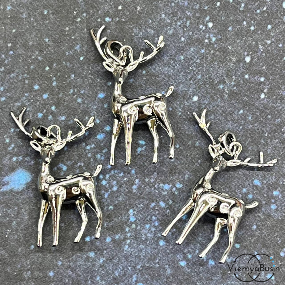 • Подвеска "Олень", 12х23 мм, из латуни с родиевым покрытием (1 шт.)