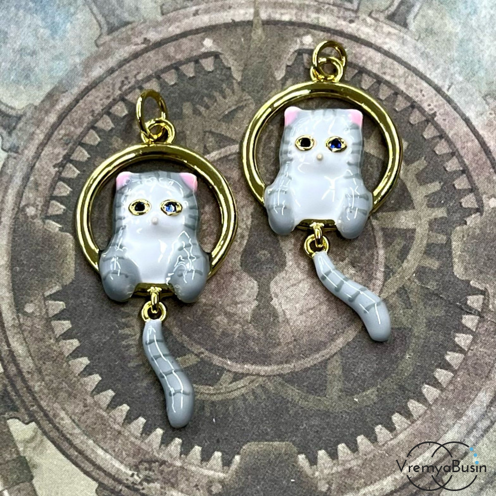 Подвеска с эмалью "Кошка", 16х30 мм, латунь с позолотой (1 шт.)