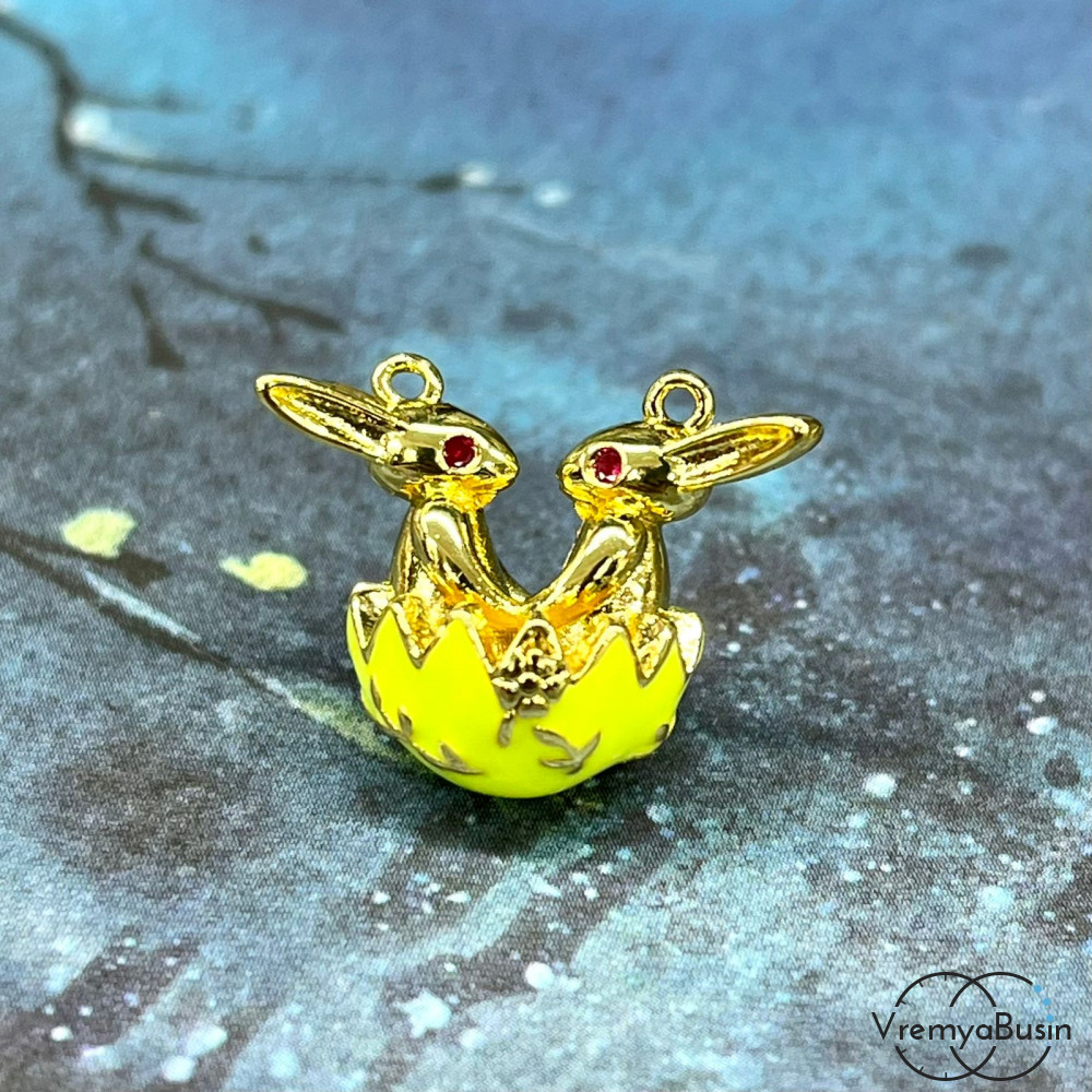 Подвеска с эмалью «Зайчики», 20х15х12 мм, латунь с позолотой (1 шт.)