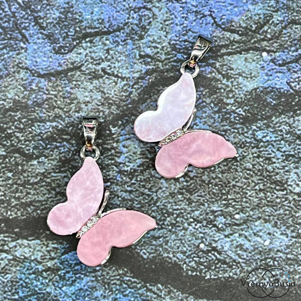 • Подвеска с перламутром "Бабочка", 18х22 мм, латунь с родиевым покрытием (1 шт.)