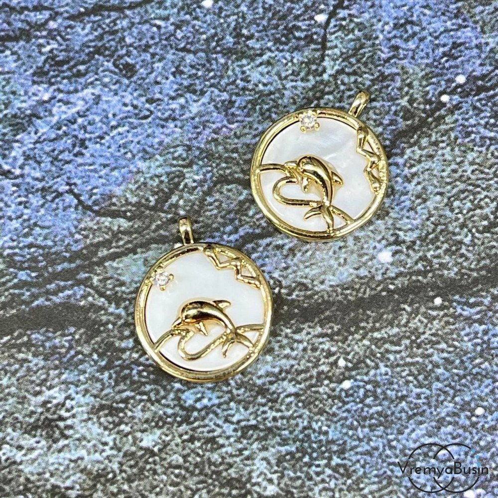 • Подвеска с перламутром, диам. 13 мм, латунь с позолотой (1 шт.)