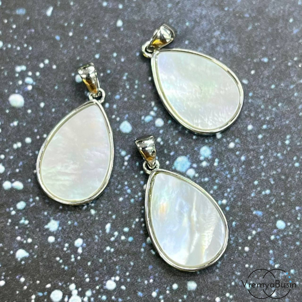 Подвеска с перламутром, капля 12х18 мм, латунь с родиевым покрытием (1 шт.)