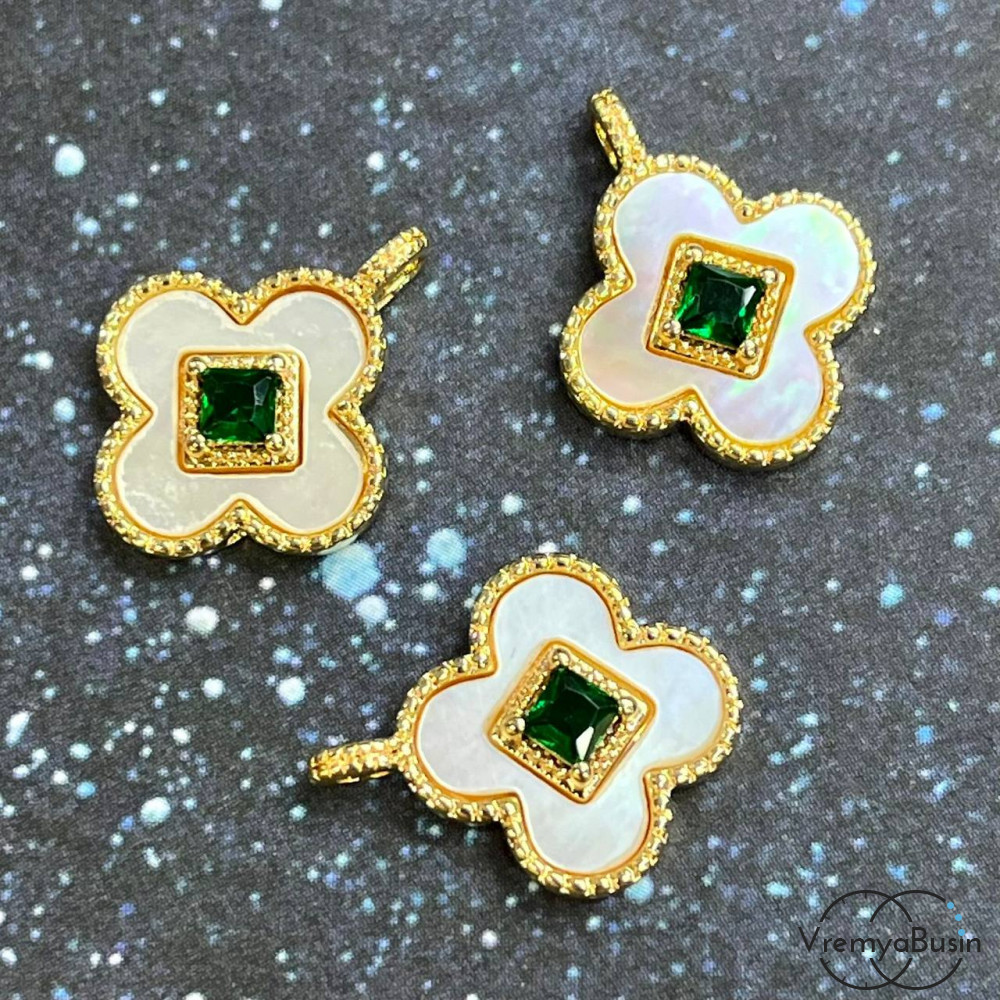 • Подвеска с перламутром, клевер 14х17 мм, латунь с позолотой (1 шт.)