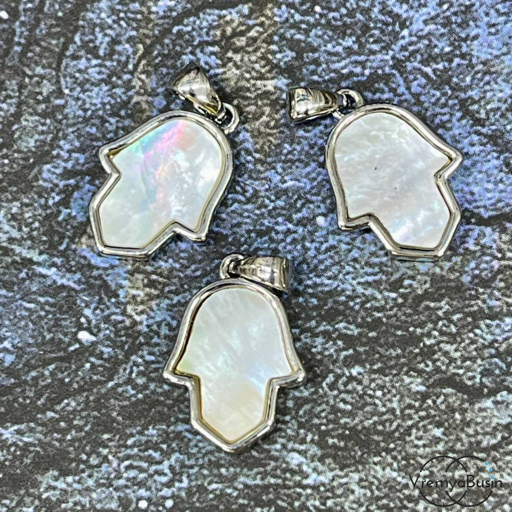 • Подвеска с перламутром "Ладонь", 12х16 мм, латунь с родиевым покрытием (1 шт.)
