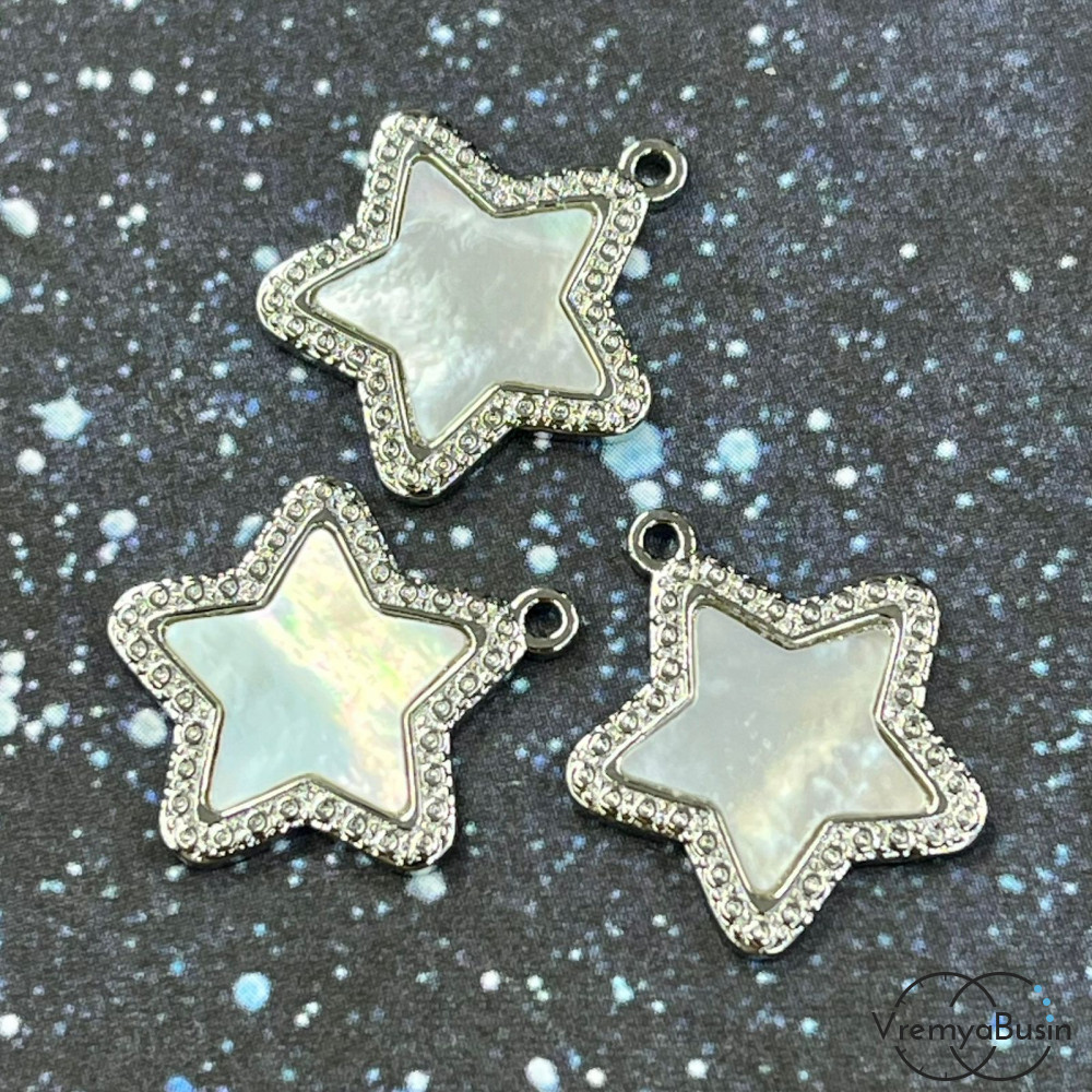 Подвеска с перламутром "Звезда", 15х17 мм, латунь с родиевым покрытием (1 шт.)