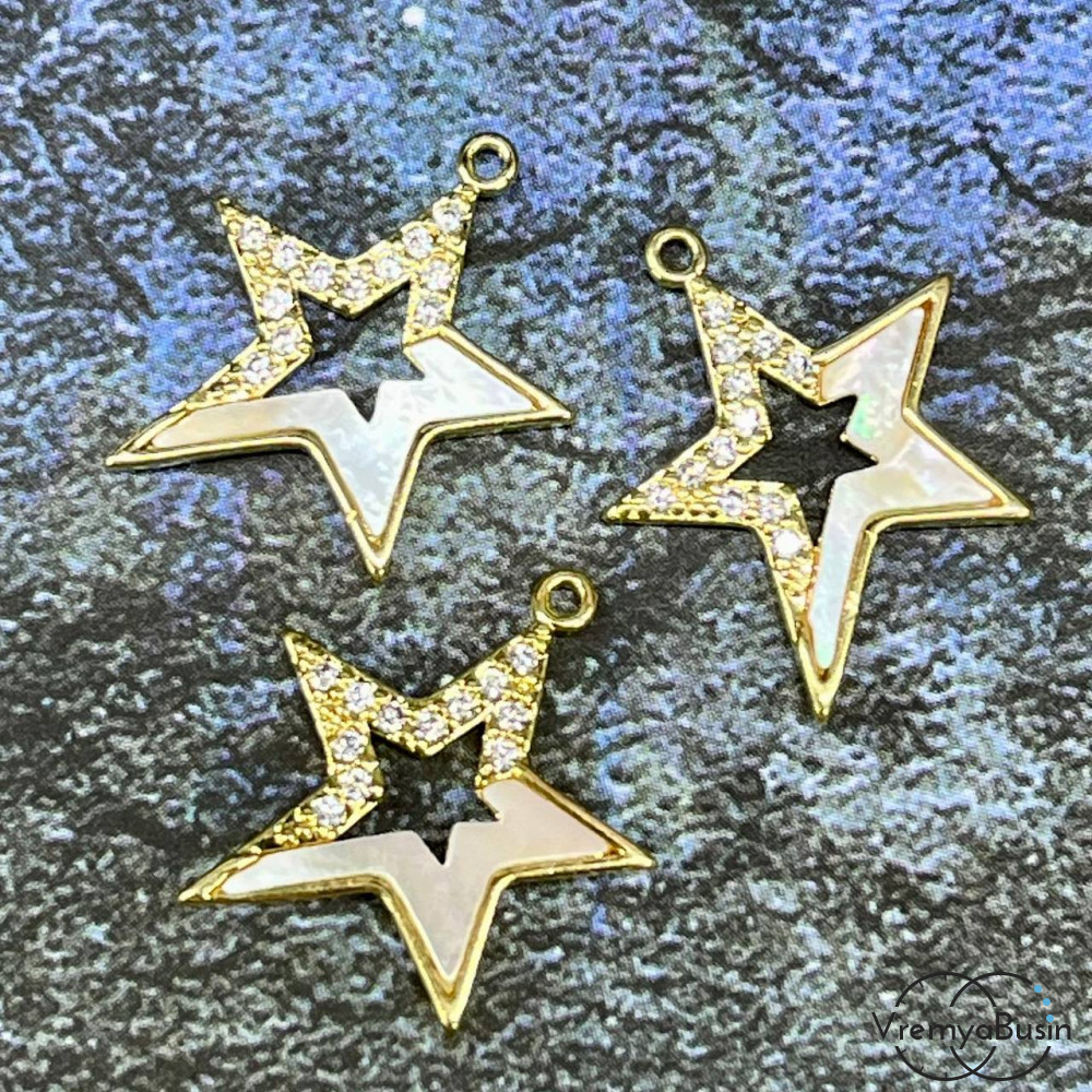 • Подвеска с перламутром "Звезда", 16х18 мм, латунь с позолотой (1 шт.)