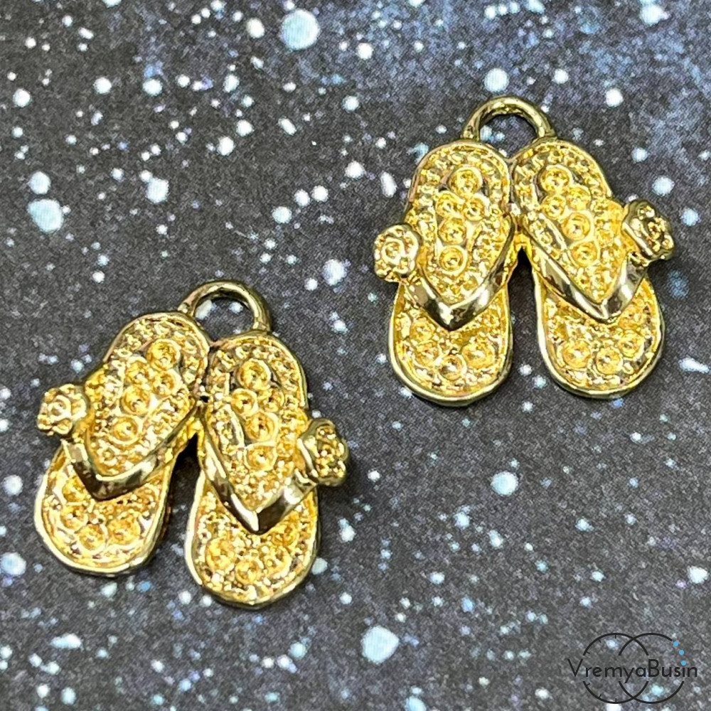 Подвеска "Шлепки", 14х17 мм, из латуни с позолотой (1 шт.)