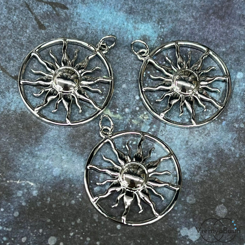 Подвеска “Солнце», 23 мм, из латуни с родиевым покрытием (1 шт.)
