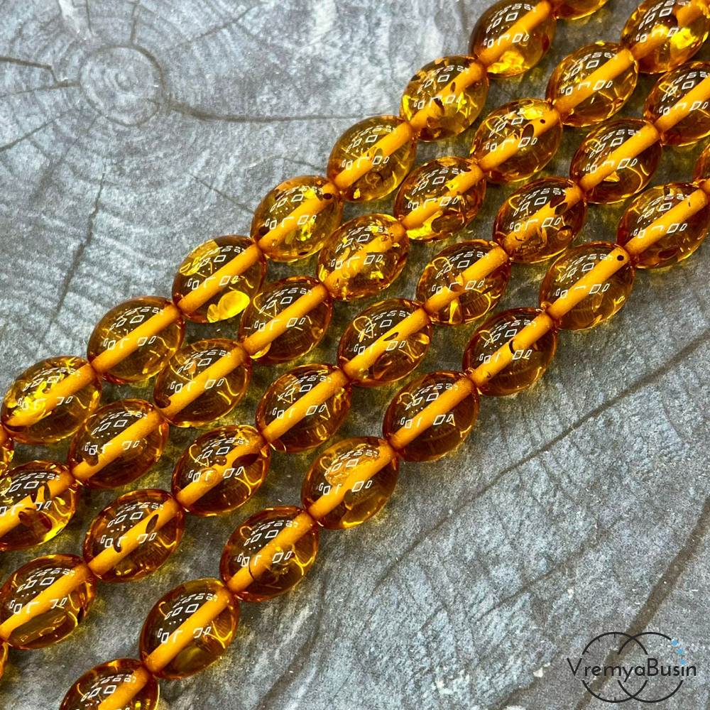 Янтарь, имит. из смолы, бусины бочонки 11х15 мм (нить, ок. 38 шт.)