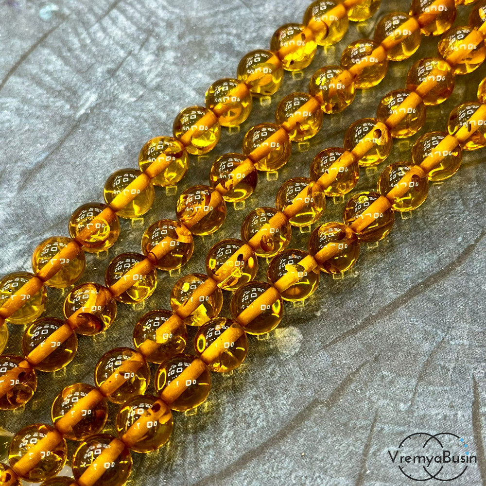 Янтарь, имит. из смолы, бусины шарики 10 мм (нить, ок. 55 шт.)