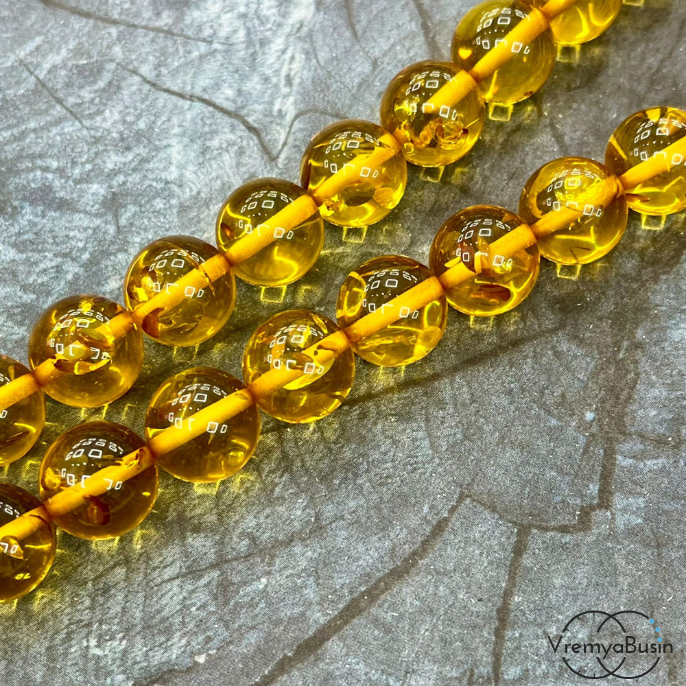 Янтарь, имит. из смолы, бусины шарики 14 мм (нить, ок. 40 шт.)