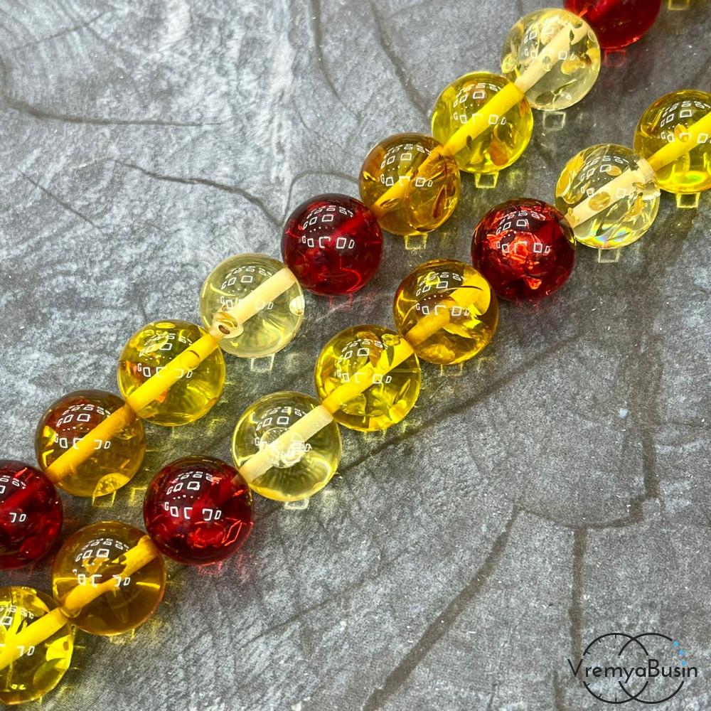 Янтарь, имит. из смолы, бусины шарики 14 мм (нить, ок. 40 шт.)