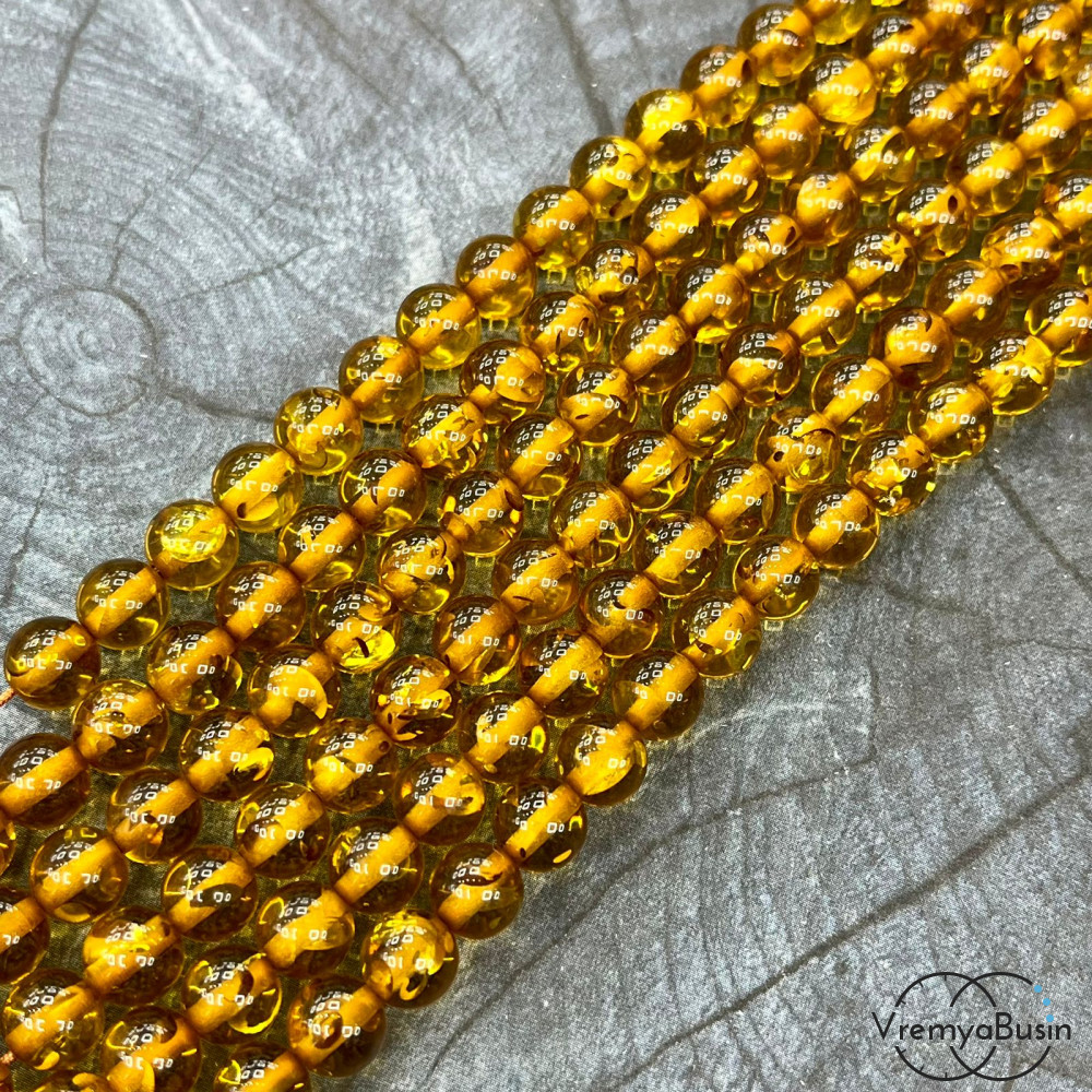 Янтарь, имит. из смолы, бусины шарики 8 мм (нить, ок. 70 шт.)