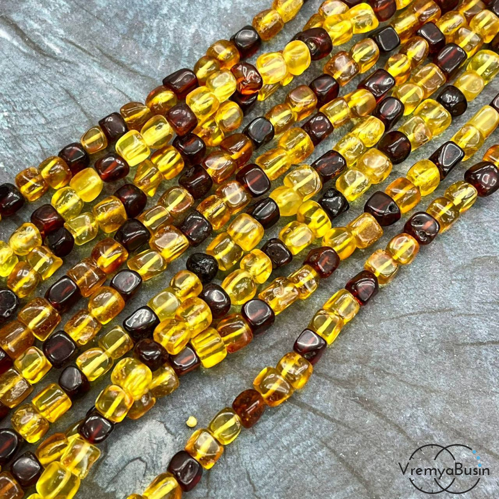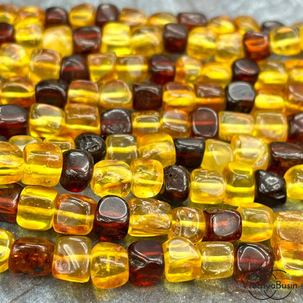 Янтарь натур., округлые квадратики ок. 7-8 мм (нить, ок. 50 шт.)