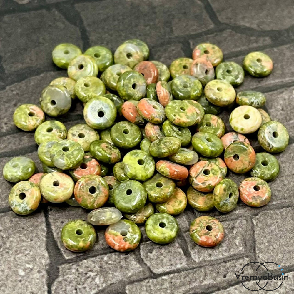 • Унакит, бусины гладкие шайбы, 6х2 мм (упак. 10 шт.)