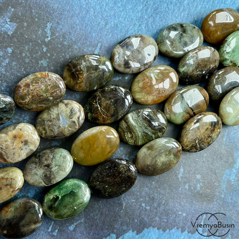 Яшма, бусины овальные плоские ок. 18х25 мм (нить, ок. 16 шт.)