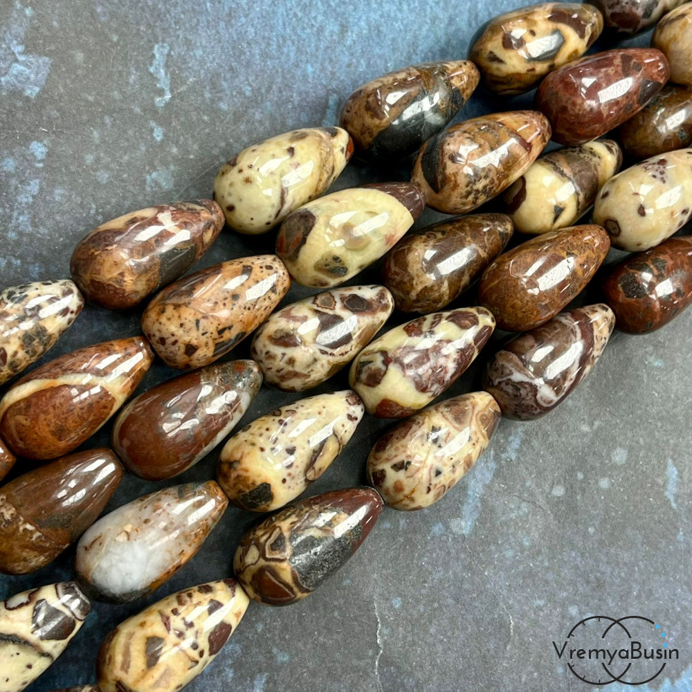 Яшма, бусины капли ок. 12х22 мм (нить, ок. 18 шт.)