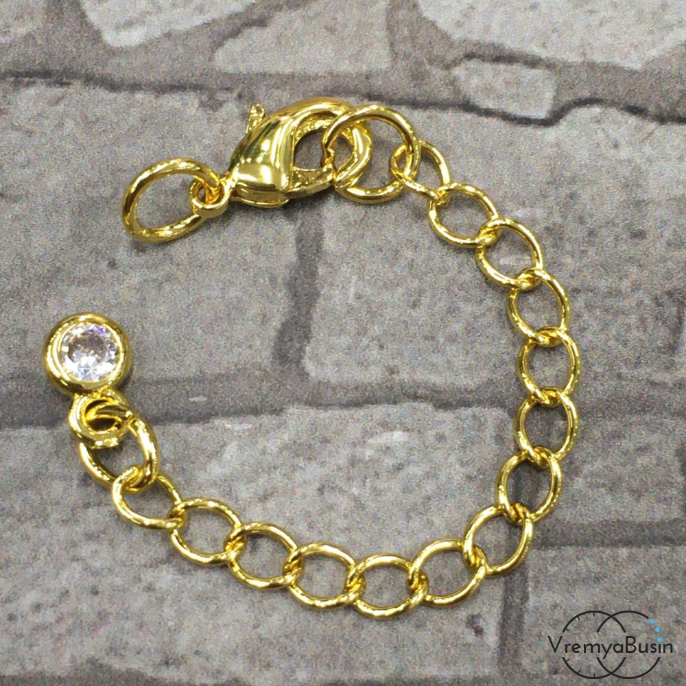 Карабин с цепочкой, латунь с позолотой 6х10 мм (1 шт.)
