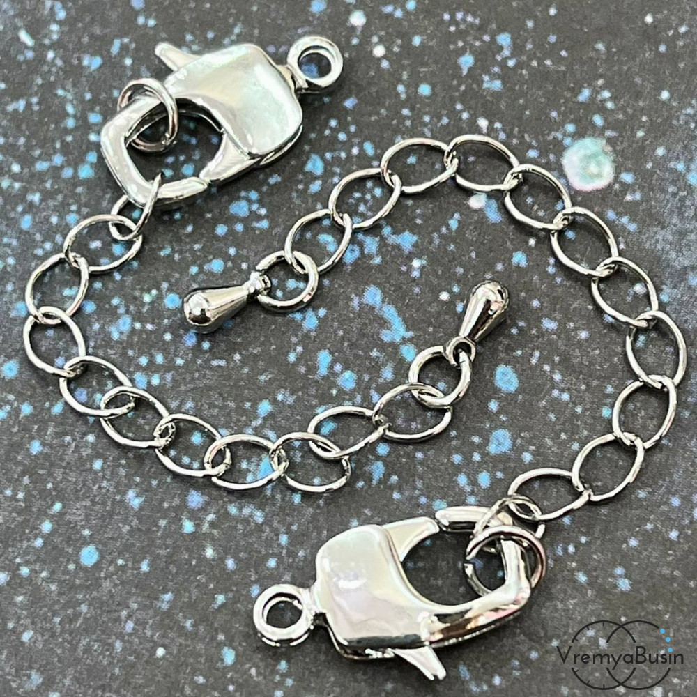 Карабин с цепочкой, латунь с родиевым покрытием 10х16 мм (1 шт.)