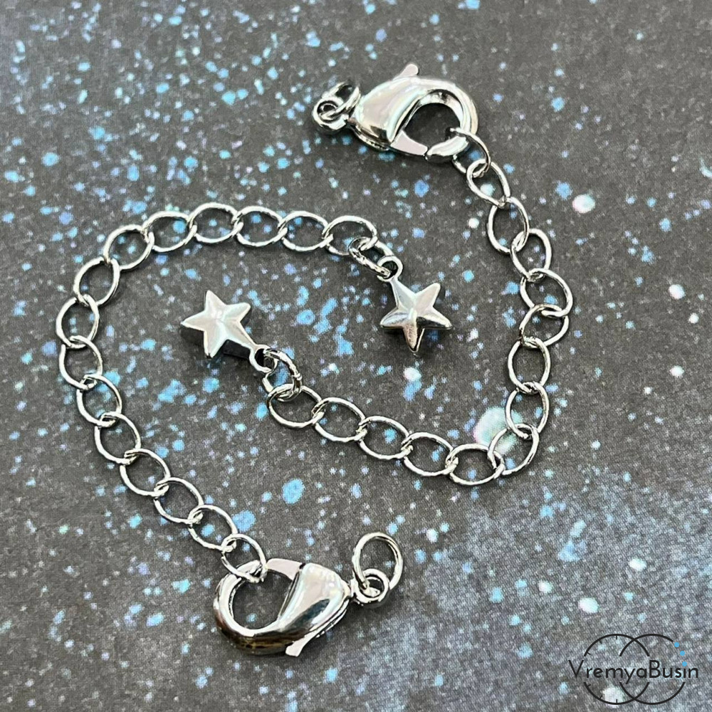 Карабин с цепочкой, латунь с родиевым покрытием 7х12 мм (1 шт.)