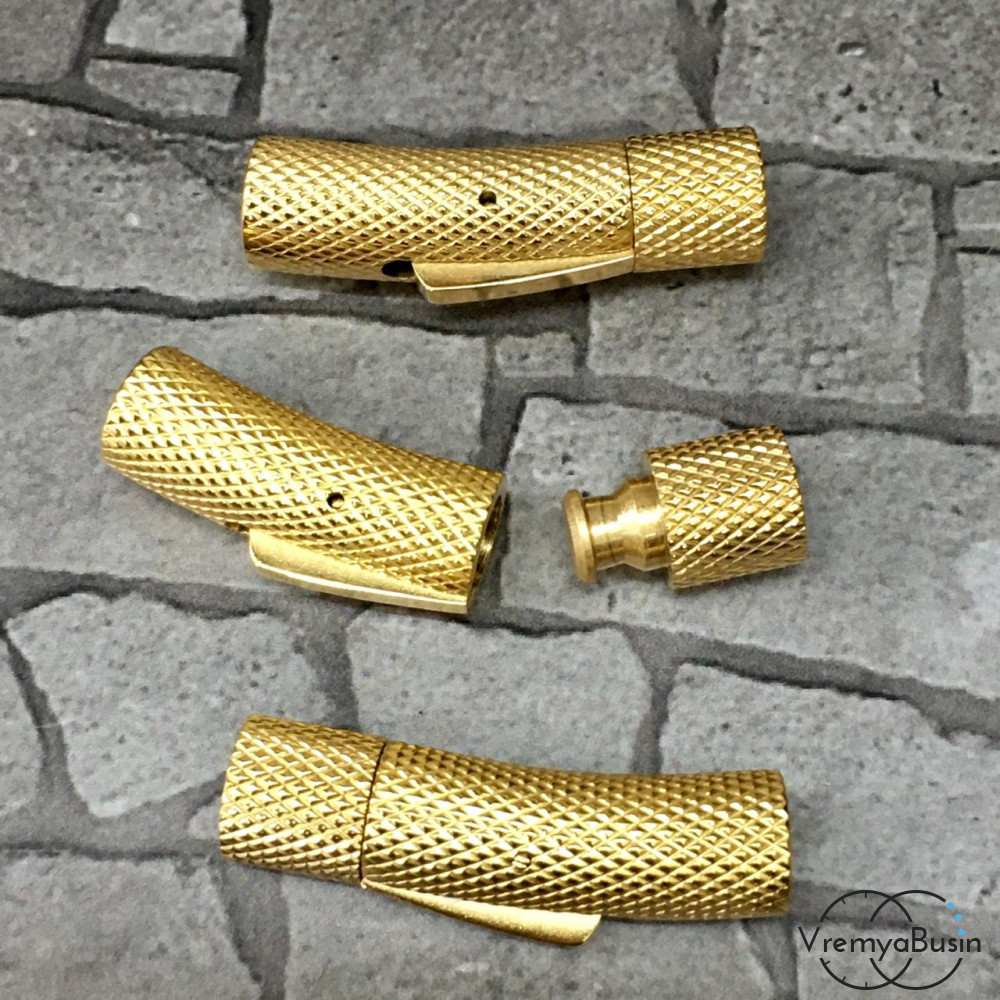 Замок для кожаного шнура 6 мм, 8х30 мм, латунь с позолотой (1 шт.)