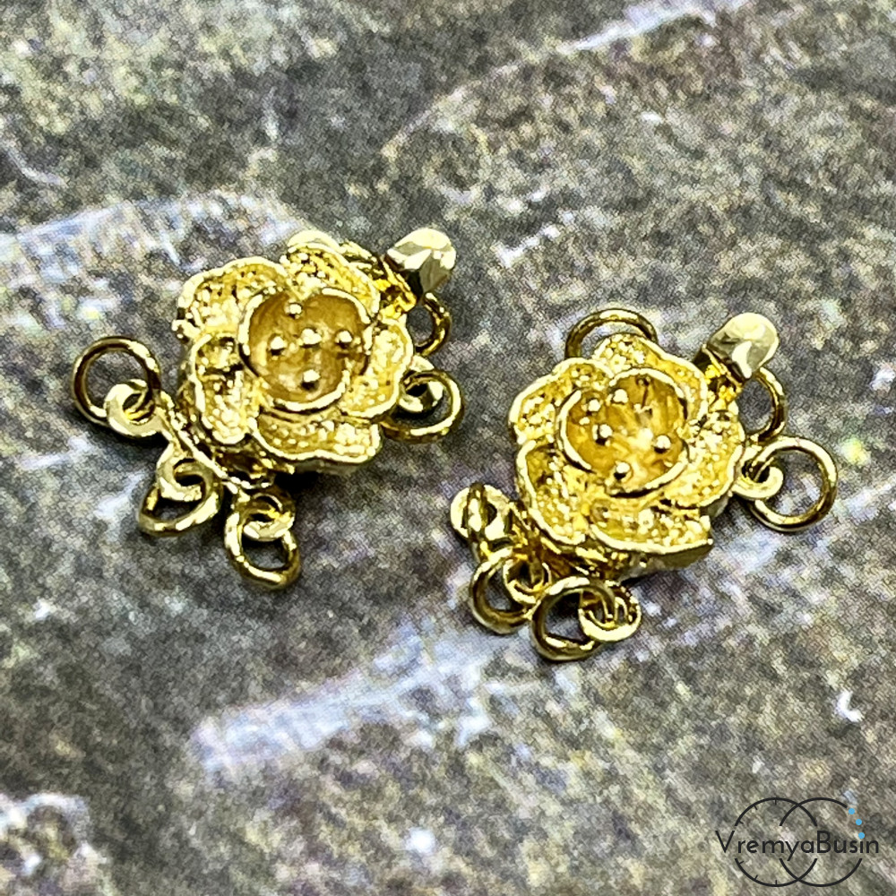 • Замок для украшений, на 3 нити, 9х12 мм, латунь с позолотой (1 шт.)
