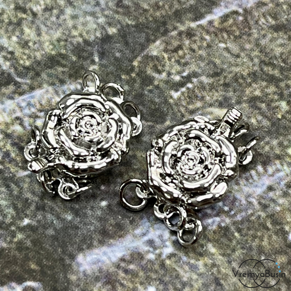 • Замок для украшений, на 3 нити, 11х13 мм, латунь с родиевым покрытием (1 шт.)